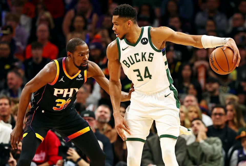 字母哥的加盟成本很高,但其他明星球员的加盟成本也很高。将他、杜兰特和弗雷德-范弗利特联手,或许能让火箭的进攻成为联盟顶尖的进攻之一。试想一下,字母哥,范乔丹,杜兰特这个梦幻三巨头,能攻能防,三人都有总冠军经验,而且还是在各自不同的队伍拿到的总冠军。KD目前在得分能力上,仍然是联盟顶级水准,上赛季场均26.6分排名联盟第6。字母哥的内线统治力拉满,上赛季场均30.4分11.9篮板6.5助攻,得分仅次于亚历山大,KD和字母哥两个静态天赋怪,一个能突,一个能投,那画面不敢想象。最后还别低估了范乔丹。