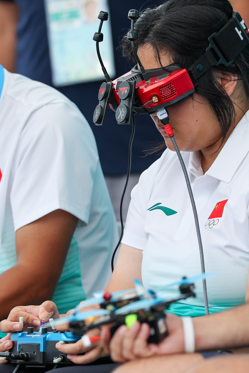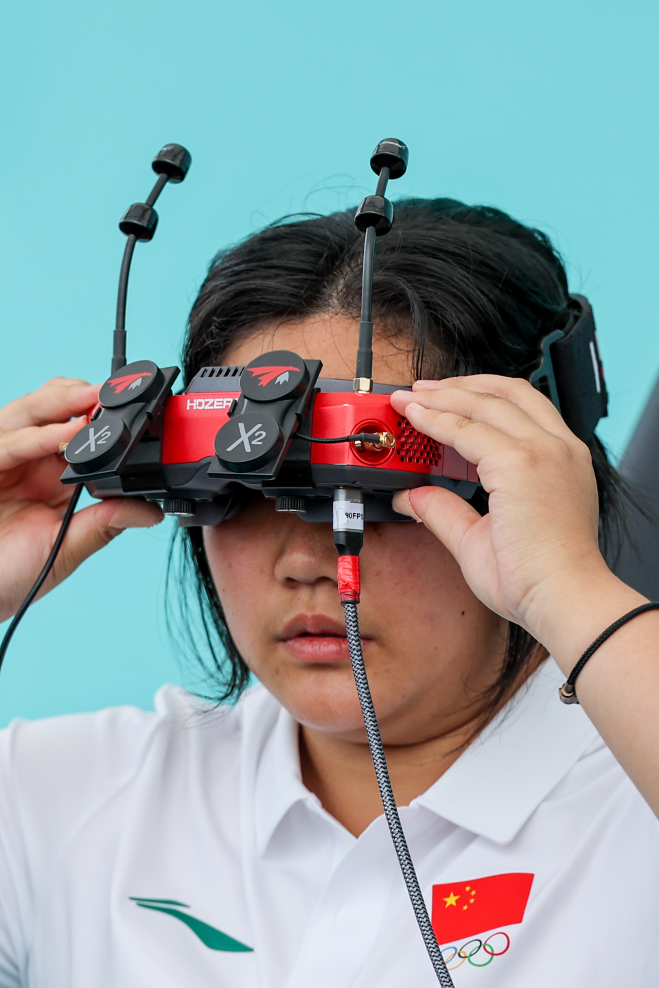 8月14日,中国选手何雨瞳在无人机竞速资格赛第二轮比赛前进行准备。新华社记者 李博 摄